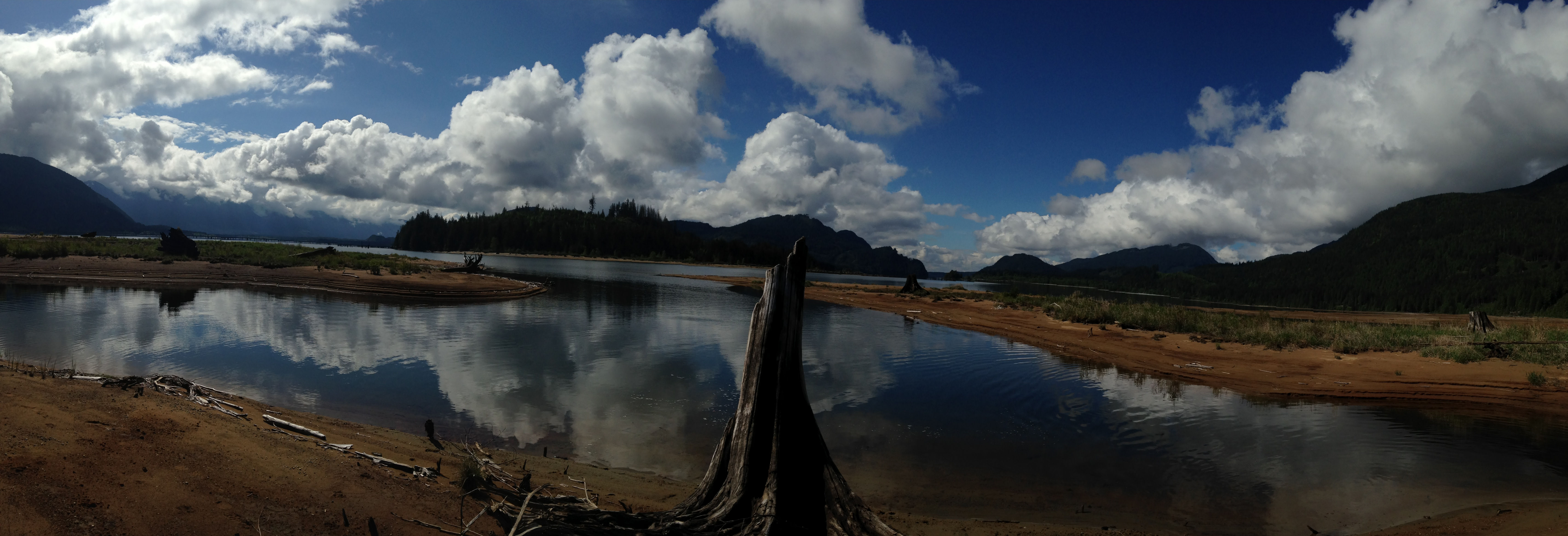 The constant rising and lowering of Stave Lake water level by the dam at Stave Falls has made this multi coloured sand the emerald glacier waters are amazing clear